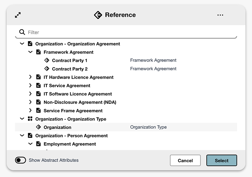 When you add a Reference criterion, a dialog will open with the available references.