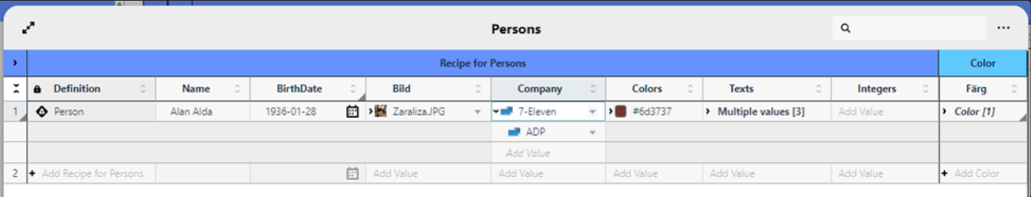 If a value of a multiple attribute cell only contains one value it is displayed in the cell.