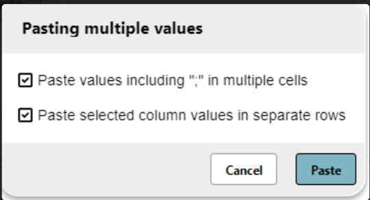 A confirmation dialog is displayed if the selected cell to be pasted in is multiple attribute values.